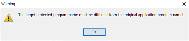 (해석 : 보호할 대상의 프로그램이름은 원본 어플리케이션 프로그램이름과 달라야합니다!)