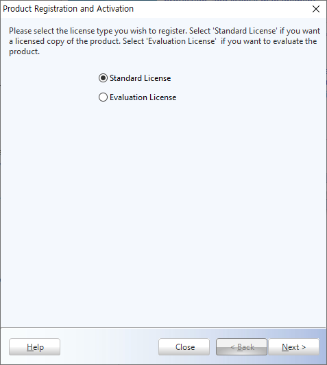 현재 사용중인 파일은 평가판이므로 Evaluation License를 선택해줍니다.