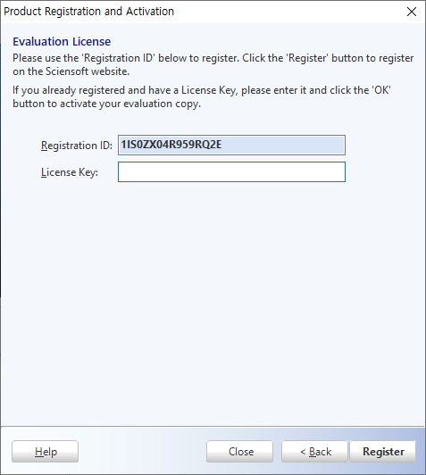 또한 지금 ID는 등록이 되어있지 않기에 License Key를 입력하기 전에 하단의 Register 버튼을 눌러 ID등록을 먼저 해줍니다.