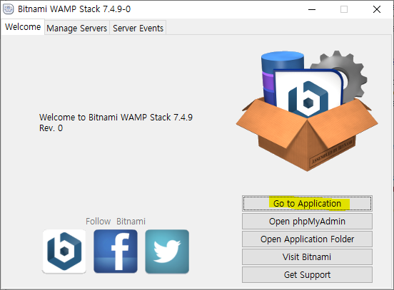 저는 자동으로 실행이 되지 않아 설치된 [ C:\Bitnami\wampstack-7.4.9-0 ] 경로로 들어간 다음 manager-windows라고 써있는 응용프로그램을 직접 클릭해 실행했습니다.
