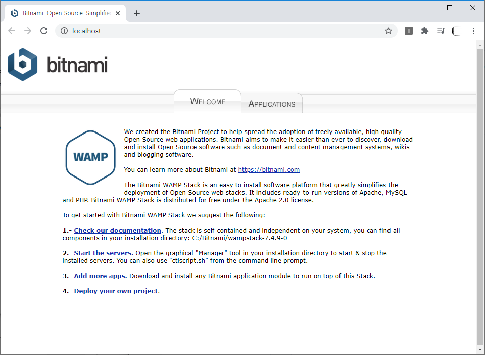 여기서 Bitnami WAMP Stack을 사용합니다.