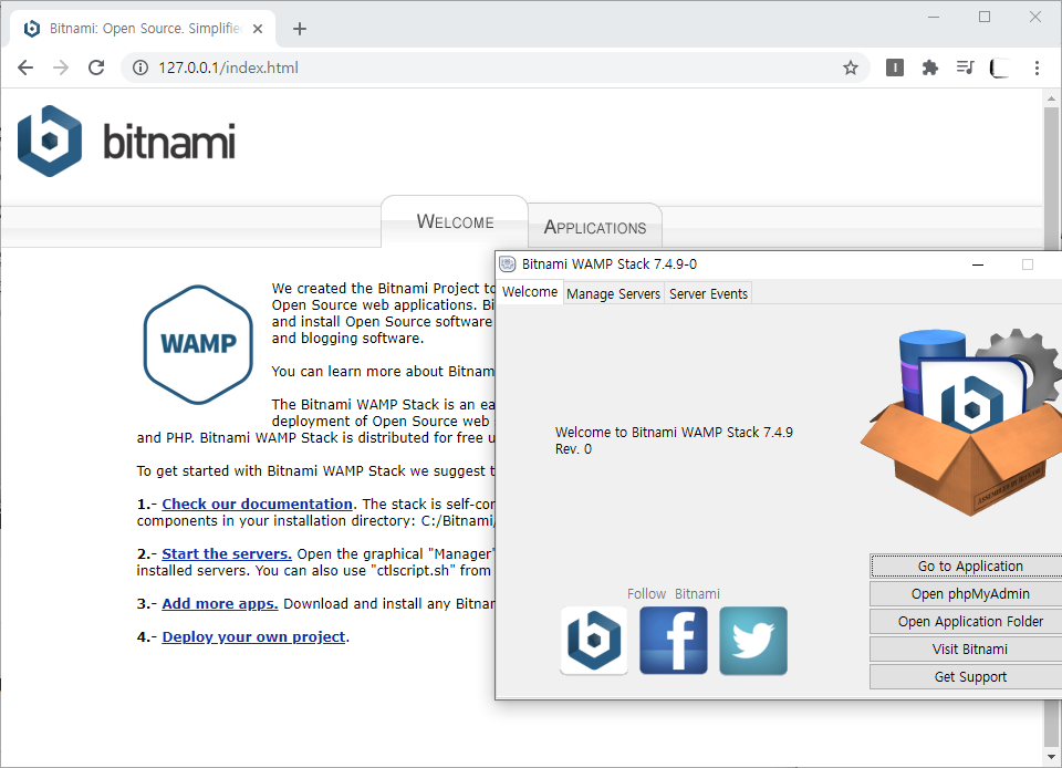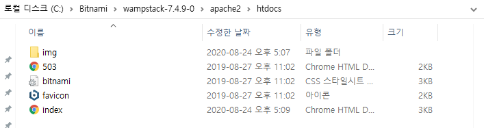 그러면 Bitnami가 설치된 파일에 들어가서 (ex. C:\Bitnami\wampstack-7.4.9-0) appache가 설치되어 있는 디렉토리에 들어갑니다.