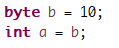 | 작은 공간의 메모리에서 큰 공간의 메모리로 이동 ex) byte형(1byte) → int형(4byte) : 원래 자료형보다 메모리가 저 큰 자료형으로 형변환 되었기 때문에 문제가 생기지 않음 |